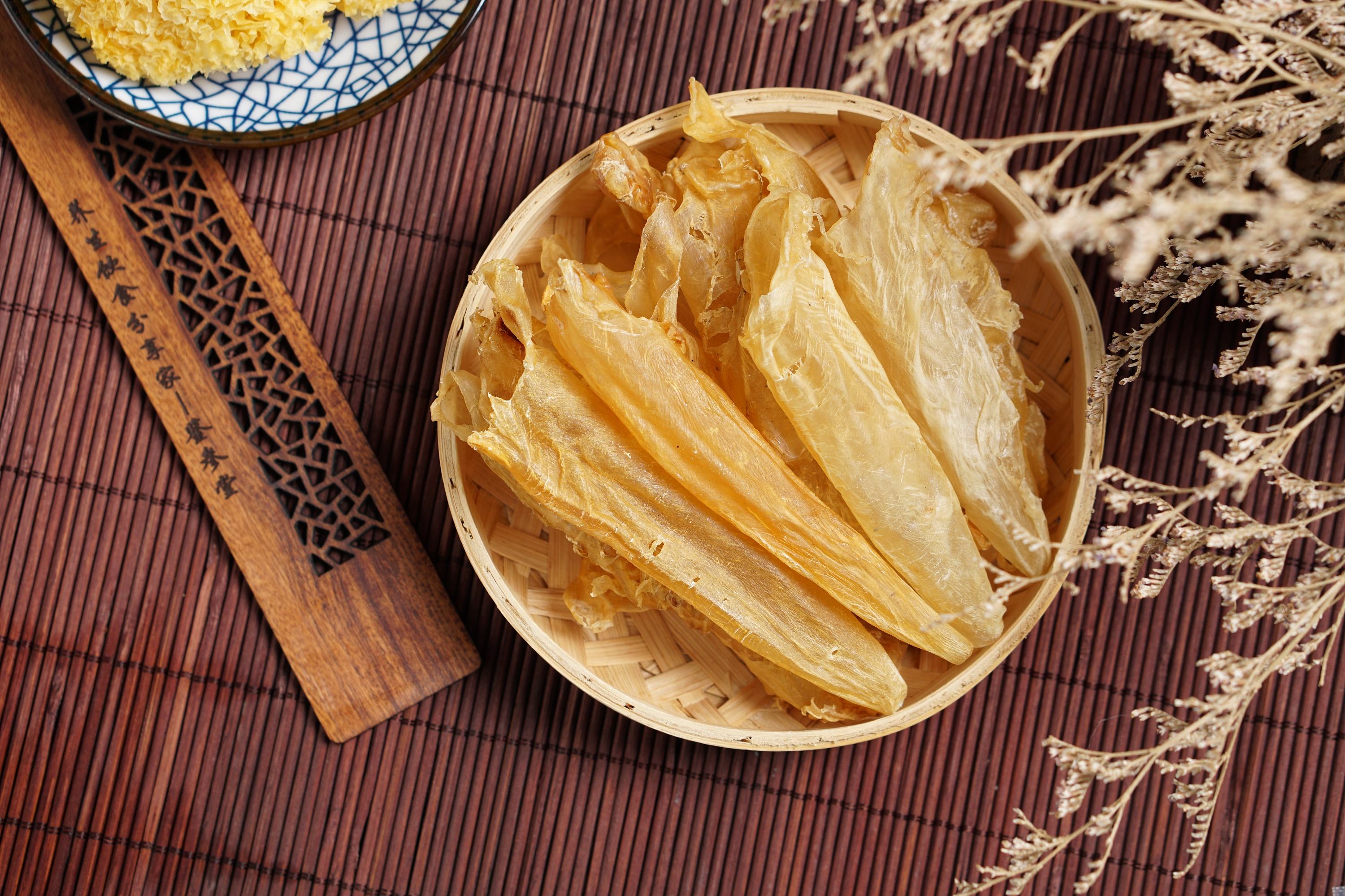 花胶是将大型鱼类的鱼鳔(也就是控制鱼类升降的器官)切开晾干制成的。富含蛋白质、胶质等。鱼肚排名靠前的是鱼胶之王:金钱鳎胶、白花胶、黄鲟胶、黄花胶、鳎胶、鳗鱼胶。