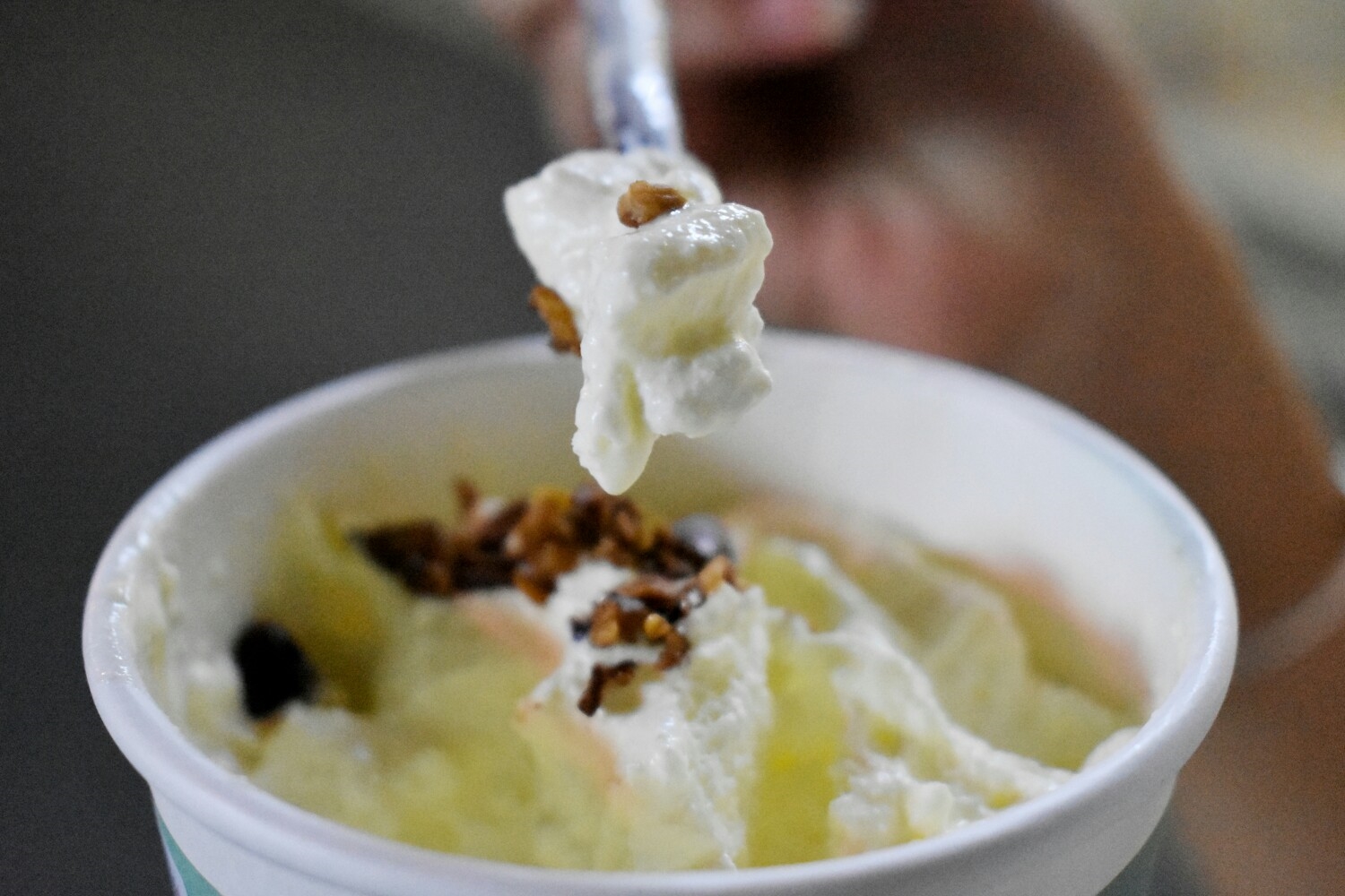 首先,你需要用一根细吸管把坚果和一些奶油分开,吃一部分奶油。一定要抓紧,不然坚果会湿,口感会大打折扣。