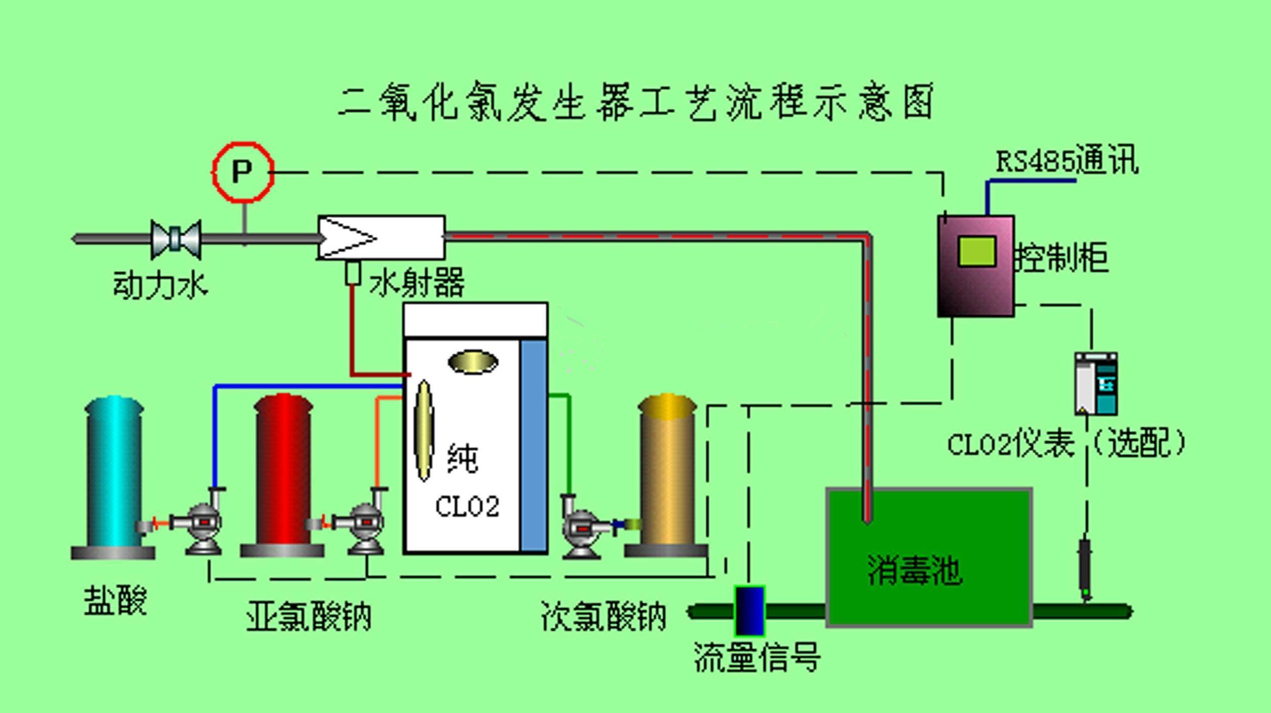 二氧化氯发生器广泛应用于城市自来水、农村饮用水、游泳馆、生活污水、医疗废水等领域的消毒。二氧化氯发生器可分为化学法和电解法。电解二氧化氯发生器采用特殊电极和电解隔膜电解饱和盐水,生产出多种成分的高效混合消毒器。高效混合消毒液通过水射流与待处理水体充分混合,达到消毒处理的目的。