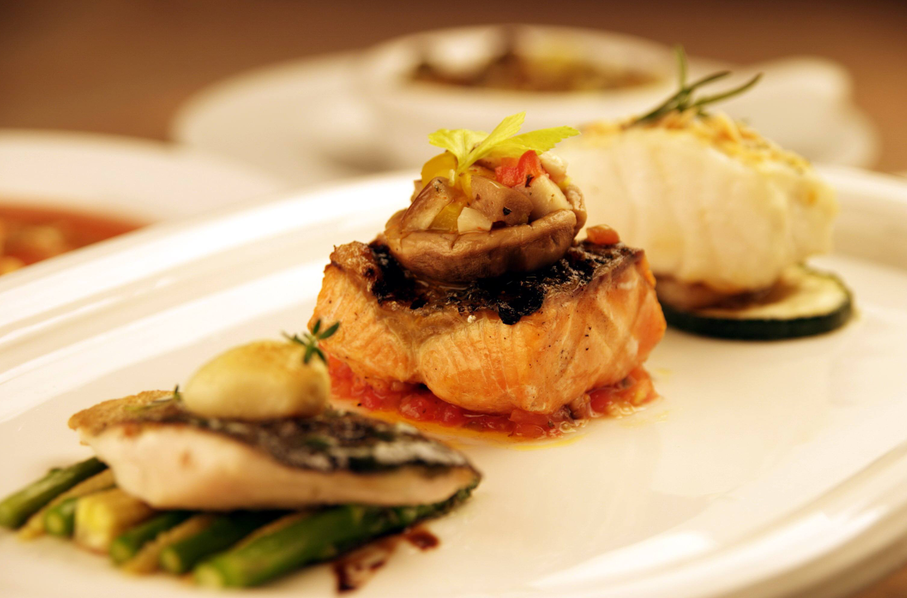 (4)主菜(肉类、禽类菜肴);(5)沙拉(素菜);