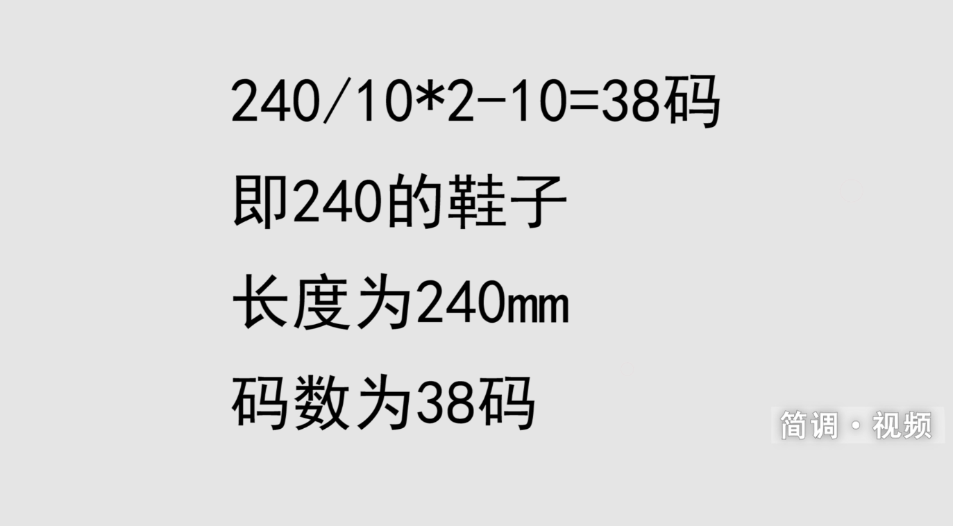 我偷偷告诉你鞋码的换算公式。我们一起算算。240/10*2-10=38码,也就是240双鞋,长240mm,就是38码,所以38双鞋应该是240。