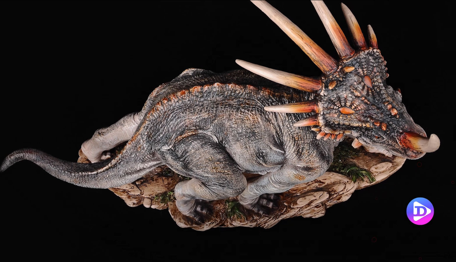 三角龙的口鼻和鼻孔上方有一只角;以及眼睛上方的一对角,可长达1米。头骨后面是一个相对较短的骨质头盾。大多数其他角盾恐龙的头上都有大洞,但三角龙的头显然很硬。三角龙是最后出现的恐龙之一,通常被视为白垩纪晚期的代表性化石。它是白垩纪最强壮的食草恐龙。三角龙独特的外形使它们经常出现在电影、电脑游戏和电视节目中,所以人们可以经常看到他。