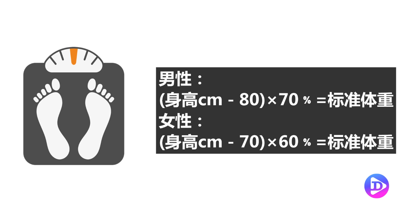 根据世界卫生组织推荐的计算方法:【插入材料“体重”】男性:(身高cm-80) 70%=标准体重,女性:(身高cm-70) 60%=标准体重。