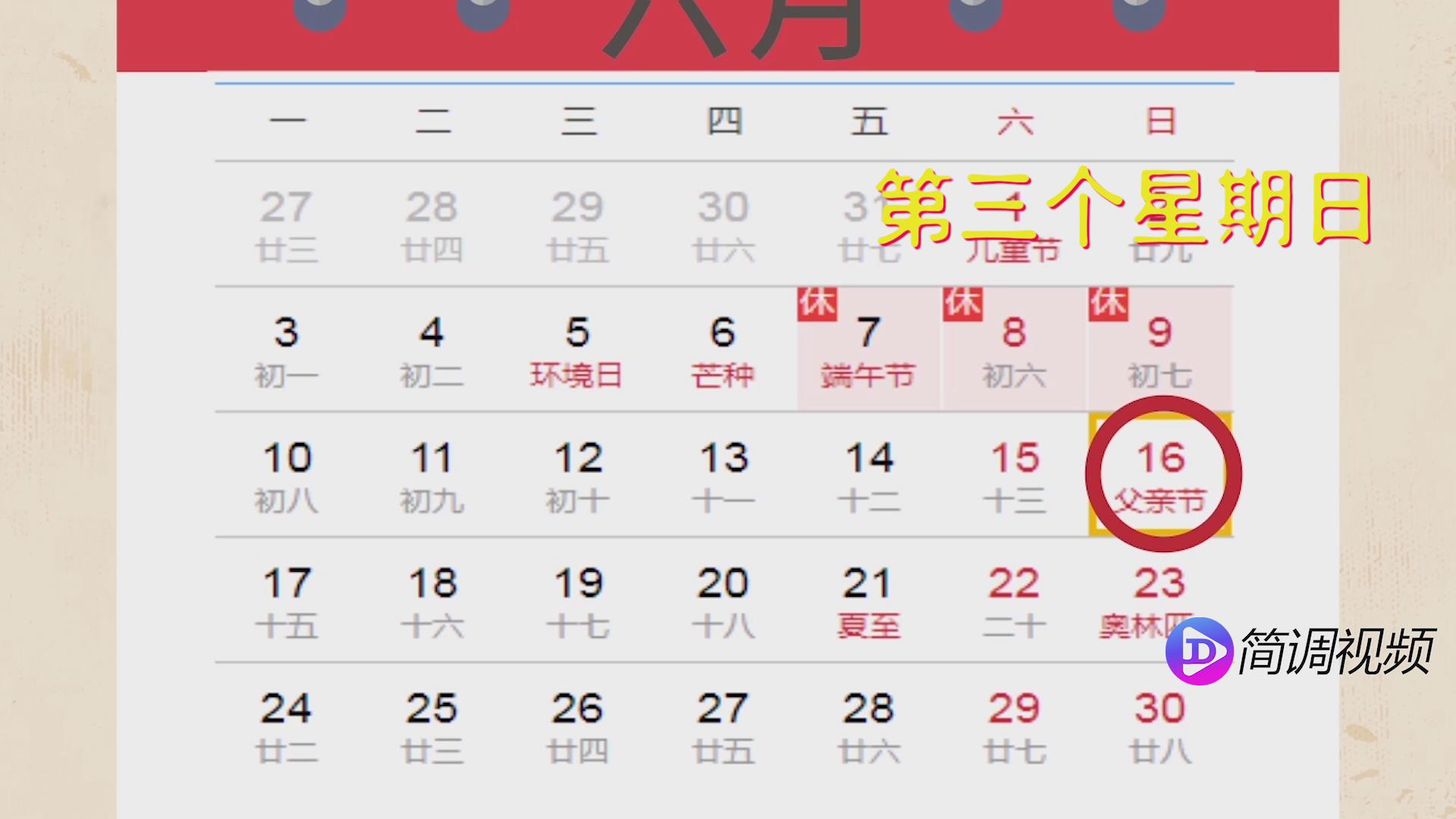 每年六月的第三个星期天是一年一度的父亲节。在这一天,人们通常给父亲送礼物,并举行家庭聚餐来庆祝他们的到来。