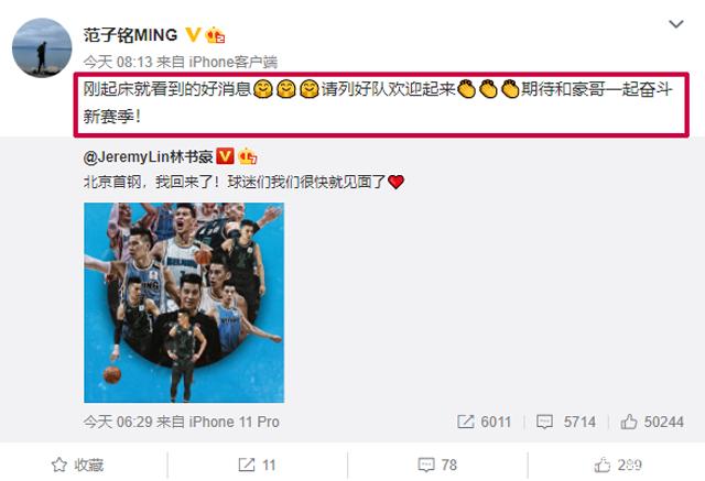 作为球迷,对此也是心知肚明的,这样的道理,范子铭怎么会不知道呢?所以,范子铭也是在网络上表示:“刚起床就看到的好消息,请列好队欢迎起来,期待和豪哥一起奋斗新赛季!”这样的范子铭,反应很快,情商很高。