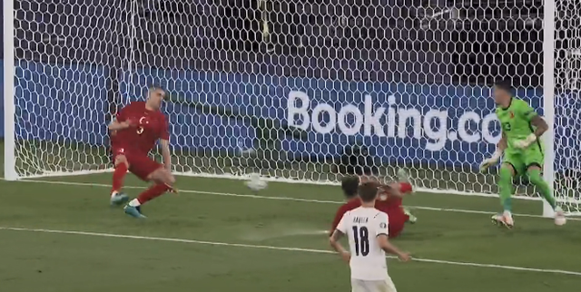 比赛进行到第53分钟,这一次意大利终于取得进球,土耳其后卫自摆乌龙。当时意大利队右路进攻,贝拉尔迪右路拿球,面对乌梅特,贝拉尔迪的突破很精彩,直接摆脱了防守。到了禁区内,贝拉尔迪直接选择传中,这一次禁区内土耳其的后卫德米拉尔躲闪不及,直接将球挡进了自家球门。