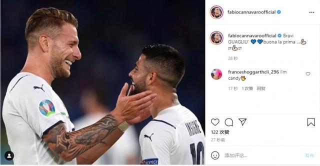 卡纳瓦罗的配图是因莫比莱和因西涅在一起庆祝的图片。