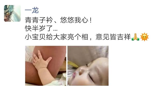 一龙欣慰地写到:“青青子衿、悠悠我心!快半岁了…小宝贝给大家亮个相,意见皆吉祥。调息、代谢!打完收工,每日三省吾身…仁者乐山、智者乐水,所以童年是大智慧!”据了解,这是一龙既今年2月以来第二次分享女儿的照片,第一次他并没有分享孩子的正面照,只是拍了小手和后背的照片,而这一次不一样了,从照片可以看出,一龙的女儿很漂亮,眼睛很大,睫毛很长,是个美人坯子。