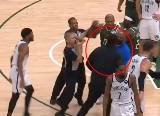 前天篮网在系列赛G3中不敌雄鹿,杜兰特和PJ-塔克曾发生争吵,当时裁判立即隔开了两人,安保也冲上了球场维持秩序。据报道,这位安保人员是KD的私人保镖。