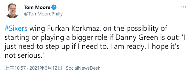 本西蒙斯表示科尔克马兹是非常棒的球员,也是球队的武器之一,他在场上有很多的精彩时刻,自己很喜欢和他一起打球。
