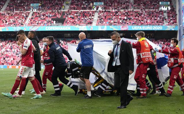 丹麦球员护送埃里克森出场。在欧洲杯赛场上,当埃里克森突然倒地,现场医务人员上演了与死神赛跑的“生死时速”——这时很多人才意识到,心脏骤停这种突发疾病,其实离每个人都很近。足球并不能算是竞技体育里最危险的一项运动,但是在过去很长一段时间里,心脏骤停和猝死时常发生在赛场上——据相关数据统计,从2004年到2017年,在赛场上猝死的人数就高达628人。