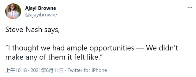 针对外界的质疑,纳什也在赛后给予回应,直言这是一场有价值的失利。
