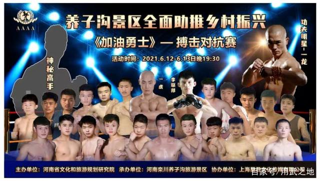 6月12日—13日,《加油勇士》武术搏击对抗赛将在栾川养子沟景区火爆上演,一龙将会以嘉宾的身份出席本次大赛。同时据赛事方介绍,当天会有一位“神秘高手”空降现场,将会成为一龙今年的首位挑战者!此外,在本次比赛“砀山少侠”李联邦、一虎都将现身。