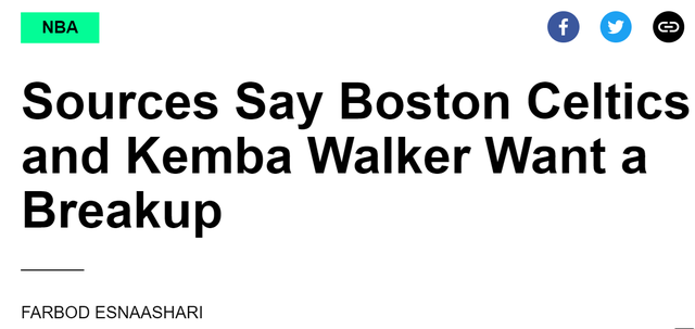 绿军与沃克都希望能够在休赛期分道扬镳,因为绿军已经确定将围绕塔图姆和杰伦继续建队,沃克并不在计划中。