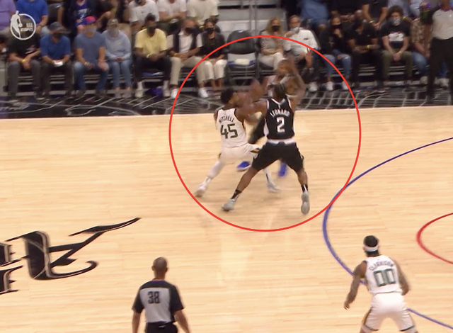 需要特别说的是,快船五小防守强度相当大。莱昂纳德承担了主防米切尔的重任,第一节还剩5分55秒,卡椒包夹米切尔,米切尔无奈传球给了博格达诺维奇,后者直接投了三不沾。