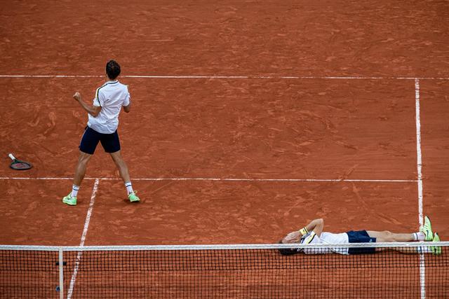 6月12日,法国组合埃贝尔(右)/马于庆祝胜利。新华社发(奥雷利安·莫里萨尔摄)
