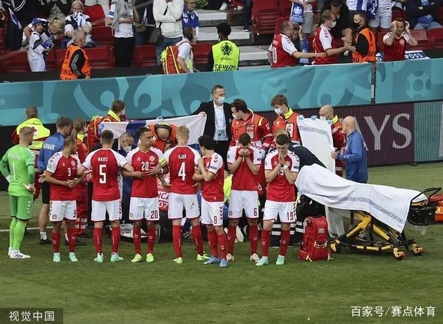 在一番不知所措后,医疗团队冲进场内,丹麦的所有队员在队长克亚尔的带领下,都围拢在埃里克森的身边,尽管他们当中有的人还不知所措,有的人已经泪流满面,但他们手挽着手,肩并着肩,在球场上为生病的队友搭建起了一个临时的急救室。