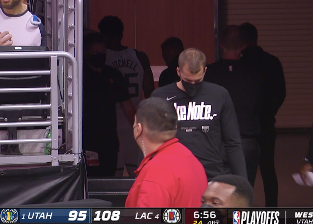 北京时间6月13日,快船和爵士的第三战,比赛进行到第四节的时候,场上出现了意外,米切尔在一次上篮之后,一瘸一拐下场。