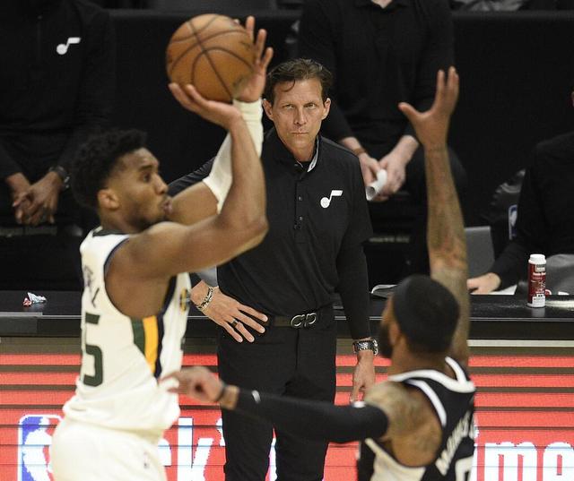 多诺万-米切尔是爵士队之前两场比赛的超级功臣,G1中狂轰45分+6个三分球,G2中又拿下37分+6个三分球,泰伦卢在赛后的采访中也表示限制米切尔十分头痛,这场G3米切尔依旧是爵士队的箭头人物,就算是莱昂纳德也无法整场比赛封堵他!