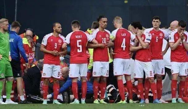 丹麦队球员围城“人墙”遮挡埃里克森被急救时的现场