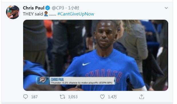 在离开火箭后保罗在接下来的两个赛季都创造了奇迹,19年夏雷霆送走了威少+乔治后他们进入季后赛的概率为0.2%,结果保罗带领年轻的雷霆进入季后赛并入火箭大战7场,差一点就击败了哈登。(其实保罗离开火箭是因为与哈登产生隔阂)