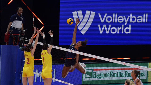 近来表现正佳的多米尼加女排迎战东道主意大利女排,前两局局比赛多米尼加女排以25:21、25:19胜出,第三局比赛意大利女排以25:22扳回一城,第四局比赛双方打得非常激烈,多米尼加女排24:24平时把握住机会连赢两分以26:24胜出,总比分3:1击败对手,取得本次比赛第六场胜利。