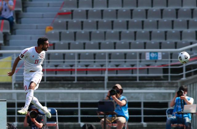6月13日,黎巴嫩队球员克杜(左)在比赛中。新华社记者 王婧嫱 摄