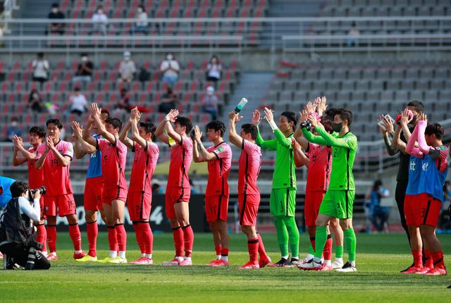 6月13日,韩国队球员在比赛后向观众致意。新华社记者 王婧嫱 摄