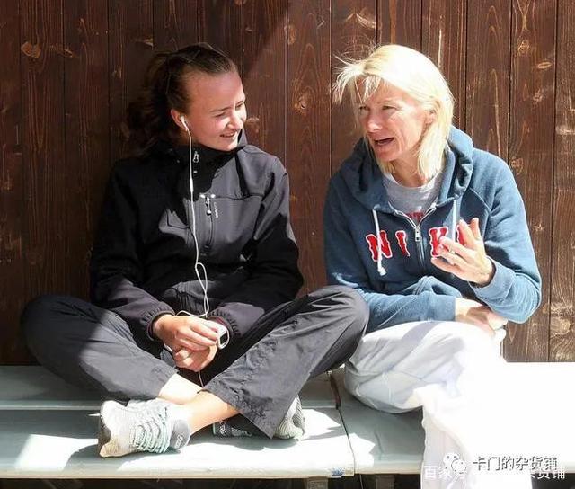 克雷吉茨科娃的前教练诺沃特娜有一头金色的头发,当她们坐在场边讨论技战术的时候,阳光下她的头发会显得更加耀眼。