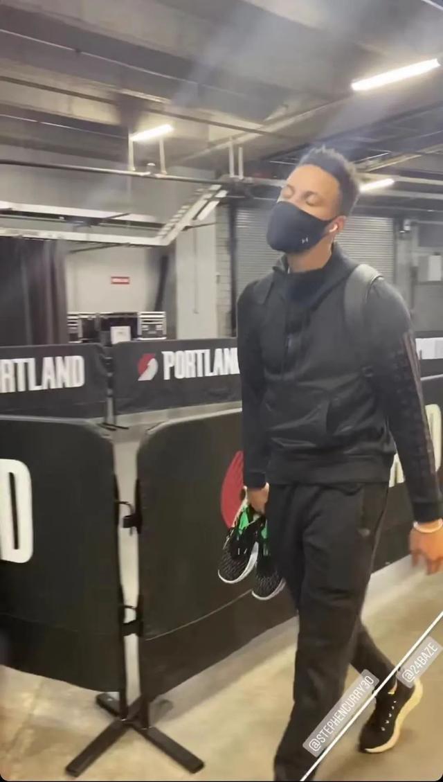 早在四月份勇士客场征战开拓者的比赛赛前,库里本人就造访了位于波特兰的安德玛总部,来都来了安德玛必定不会让小学生空手而归,在赛前的球员通道里库里手中就提着一双未曾谋面的神秘鞋款,当时也没有多少人注意到这双鞋,之后训练中又再次拍到库里上脚了这双球鞋,这也让我看到了这双鞋稍微清晰的外观轮廓,但那个时候我依旧不认为这就是库里9代;