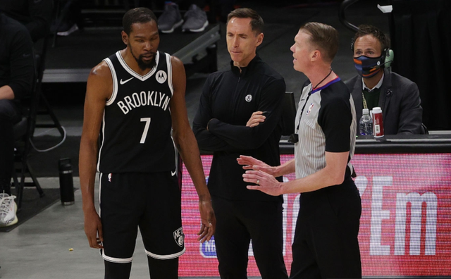 而除了欧文这次受伤之外,上半场一些防守动作的吹罚尺度,同样让人疑惑,直到欧文受伤之后,裁判在下半场才开始吹得比较紧。而上半场杜兰特面临的防守强度之大,相信明眼人都能够看出来,塔克在放杜兰特时的身体施压,甚至让解说员感慨:塔克一直在试探裁判的尺度,裁判没吹,动作就继续加大。