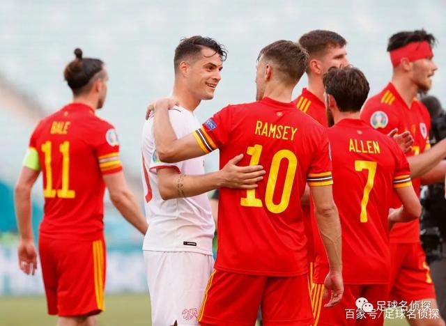 扎卡和拉姆塞在威尔士1-1战平瑞士的比赛中重逢,赛后两人寒暄致意。