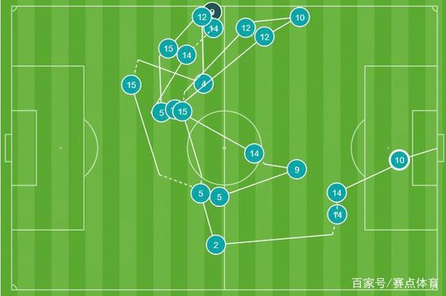 斯特林进球前,英格兰进行了17次传递,看看14号菲利普斯的跑动,无处不在