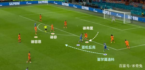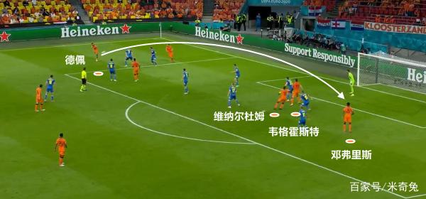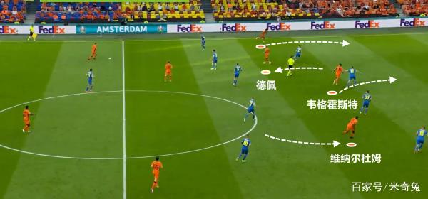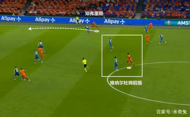 值得一提的是,在德佩拿球的同时,维纳尔杜姆和邓弗里斯也会快速前插,找寻机会。