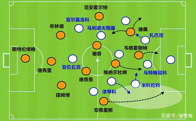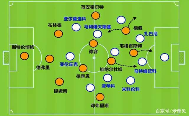 中场德容恩、德容和维纳尔杜姆都有些跑不动了,结果德波尔选择对位换下左路的2名后卫。