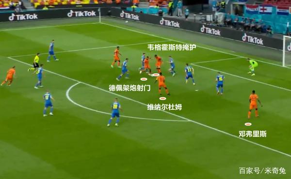 当邓弗里斯可以打穿侧翼,那么前插的维纳尔杜姆就会轻松甩开乌克兰的后腰找到机会。