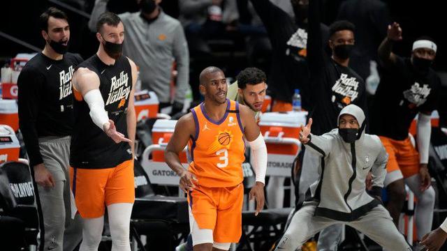 NBA西部半决赛第4场,太阳队125-118击败掘金队,总比分4-0横扫掘金队晋级西部决赛。太阳队控卫保罗19投14中拿到37分7助攻。关键的最后一节,保罗6投4中拿到13分,没有给掘金队任何机会。而在半决赛里,保罗在最后一节的表现几乎无人能挡。