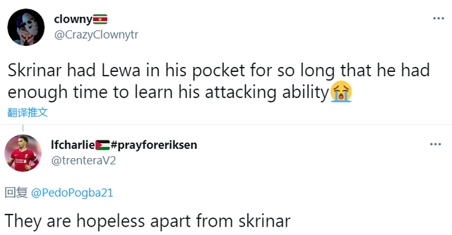 西方社交网站上,球迷在感叹:“什克里尼亚尔不但将莱万装入了口袋,还教他怎么进攻”,“面对这样的什克,波兰人除了绝望,还能怎样!”