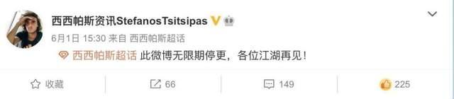 去年6月1日,西西帕斯通过推特转发了一则敏感的消息,此举遭到了国内大量网球迷的激愤,他们从此纷纷脱粉,并表示不再关注他的消息,西西帕斯的中文粉丝账户在6月2日也明确表态无限期停更他的消息。