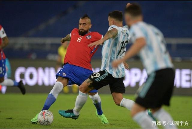 智利首发:1-布拉沃、2-梅纳、3-马里潘、17-梅德尔、4-伊斯拉、13-普尔加、8-比达尔、9-梅内塞斯、20-阿兰吉斯、21-帕拉西奥斯、11-爱德华多-巴尔加斯