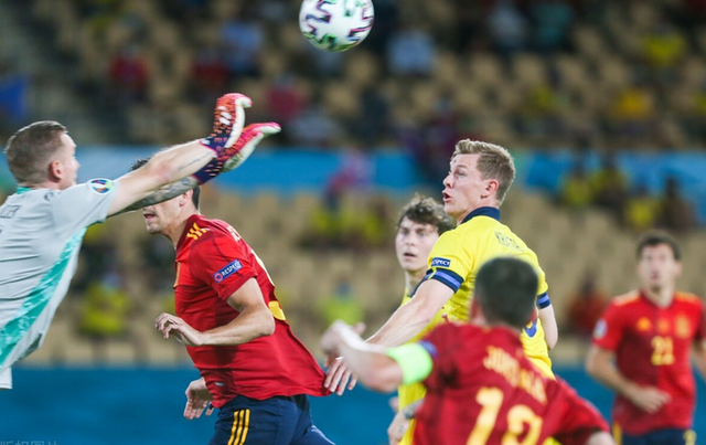 比赛第61分钟,瑞典再获反击良机,又是伊萨克,他单骑闯关连续摆脱了三人的包夹防守,最后横扫门前助攻后点包抄的马库斯-贝里完成射门,这一射门打偏了。比赛第90分钟,西班牙还有绝杀机会,萨拉维亚45度传中,莫雷诺门前冲顶攻门,射门角度太正未能收获进球,奥尔森再次神勇化解。最终瑞典0-0逼平了西班牙。