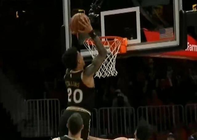 几个回合之后,科林斯再度上演暴力双手补扣。