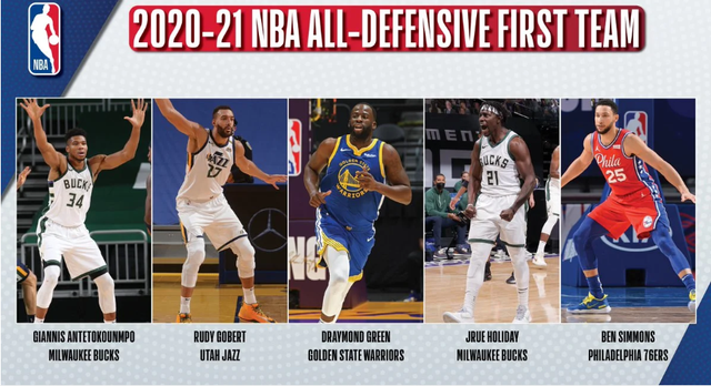 对于NBA的顶级超巨而言,每一个赛季率领球队冲击总冠军毫无疑问是他们最大的目标,除此之外,冲击个人奖项也是展现自我统治力的重要方式,如今20-21赛季的NBA季后赛已经进入到分区半决赛当中,常规赛阶段的各大奖项也都随着季后赛的深入被一一公布,联盟对外公布本赛季的最佳防守一阵,戈贝尔、本西蒙斯、追梦格林、霍乐迪和字母哥五人成功入选,东部豪强密尔沃基雄鹿队有两名球员入选成为了最大的赢家,但是当家核心字母哥进入最佳一防,成为了外界群嘲的对象,前NBA球员帕金斯在自己的社交媒体上直言:字母哥超越巴特勒进入最佳一防就是犯罪,他谁都没有防住!由于在季后赛雄鹿队和篮网队的第四场比赛当中,字母哥的疑似垫脚动作,让欧文受伤离场,并且将缺席双方第五场天王山之战,也让不少球迷调侃字母哥成功在天王山之战当中锁死了欧文!