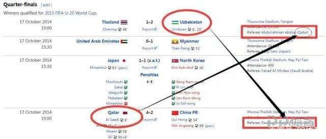 当年中国U19国青队在小组赛晋级参加1/4决赛时,取胜的话就将进入到世青赛中。遗憾的是,中国队在1/4决赛中被卡塔尔队击败。可实际上,中国国青队再如何努力,恐怕都没有可能闯过卡塔尔队这一关。为什么?赛前,亚足联安排乌兹别克裁判伊尔马托夫(也就是现在乌兹别克足协第一常务副主席、乌兹别克奥运会第一常务副主席)执法中国队与卡塔尔队的1/4决赛;而与此同时在另外一场乌兹别克队与泰国队的1/4决赛中,安排的是卡塔尔裁判阿卜杜执法。这意味着什么?当然肯定是乌兹别克队与卡塔尔队双双赢球出线!最终的结果也就是这两队晋级。这就是亚足联在裁判安排方面的“学问”,而是还是“大学问”!