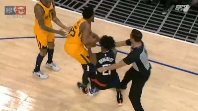 直播吧6月15日讯 快船VS爵士第四节,贝弗利和米切尔争球僵持数秒。