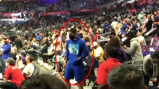 直播吧6月15日讯 快船vs爵士G4,小莫的哥哥马基夫-莫里斯再次来到了现场观战。