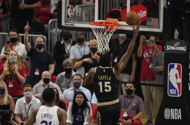在三大新援表现不如预期的情况下,老鹰队能够逆转获胜,最主要的原因就是特雷杨、科林斯和卡佩拉的发挥,其中饼皇卡佩拉不仅将大帝恩比德限制到了20投只有4中,进攻端9投6中贡献了12分和13个篮板,科林斯此战也展现出了自己的全面性,砍下了14分、12个篮板、1次助攻、1次抢断和1个盖帽的全面个人数据。