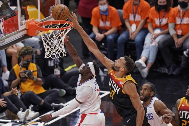 3届最佳防守球员戈贝尔在爵士体系中守重于攻,他扮演着篮板、盖帽、掩护、防守等脏活累活的功能型蓝领明星角色,他不比费城体系中的恩比德,戈贝尔不打低位又缺乏射程是卢指导能使用小阵容的前提——快船不需要派5号位肉盾在低位硬扛戈贝尔,巴图姆出任小球5号位反而使快船5号位占据了机动性和射程优势。