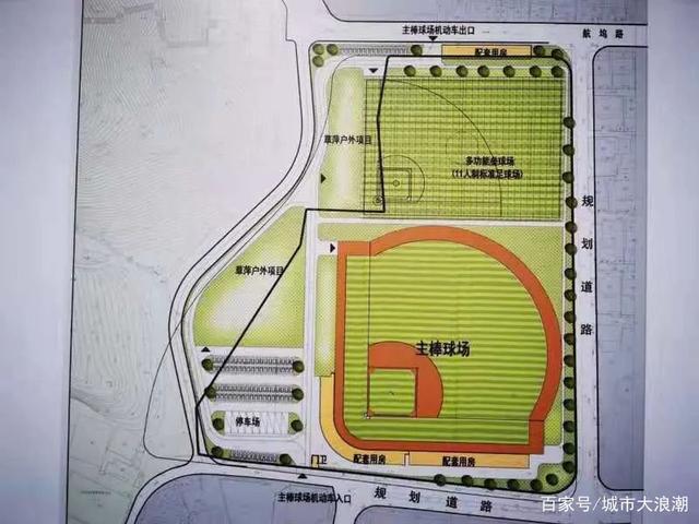 偌大的场地路面已经平整硬化,场地四周正在设置围网,跑垒路线、投手区及各垒位周围即将铺设软质红土,内场其余及外场将铺上草坪,相应的管理用房、停车场等配套设施也正在建设。