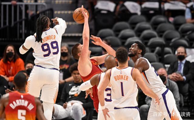 像在对阵掘金的时候,克劳德半场就送出4次封盖,直接追平太阳队史近25个赛季季后赛半场盖帽纪录。太阳能够对掘金防守那么好,除了艾顿的进步外,克劳德也是作用很大。要知道太阳的季后赛场均失分是联盟第一,只有100.8,防守效率是104.7,也是联盟第二。